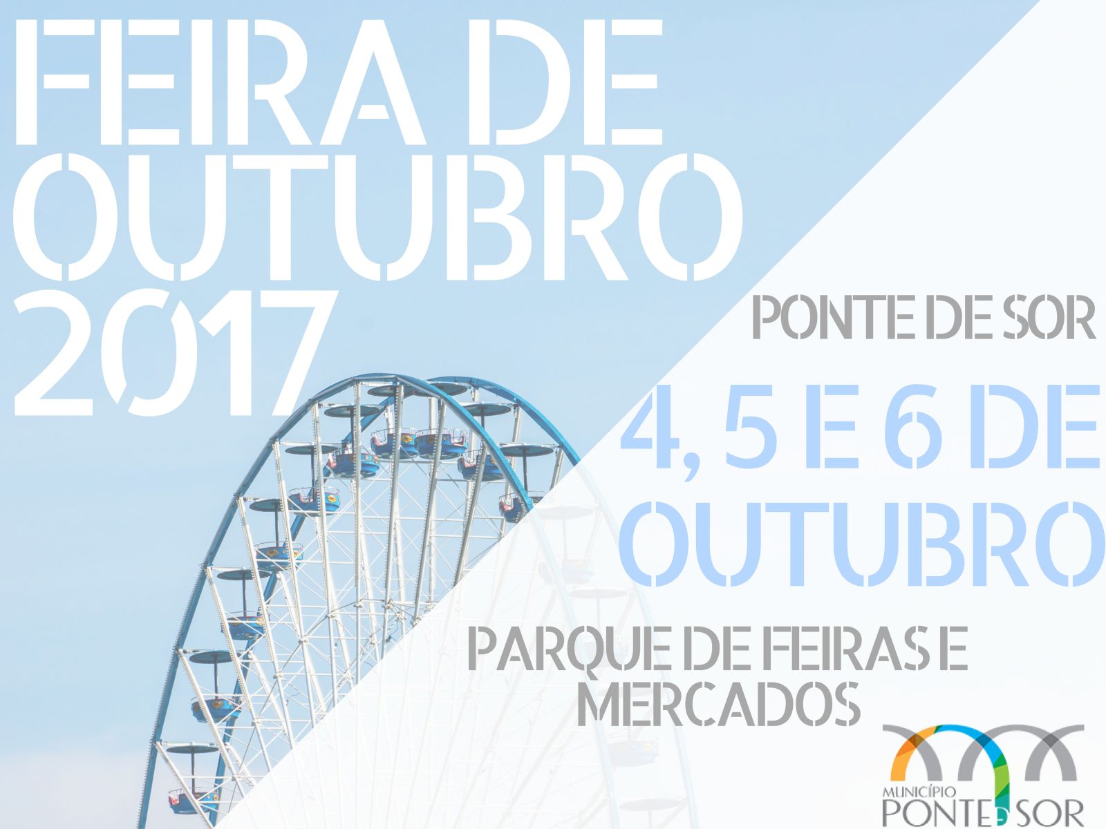 A habitual Feira de Outubro está de volta, nos dias 4, 5 e 6 de outubro de 2017, visite-nos no parque de feiras e mercados de Ponte de Sor, haverá diversões e muito comércio tradicional.