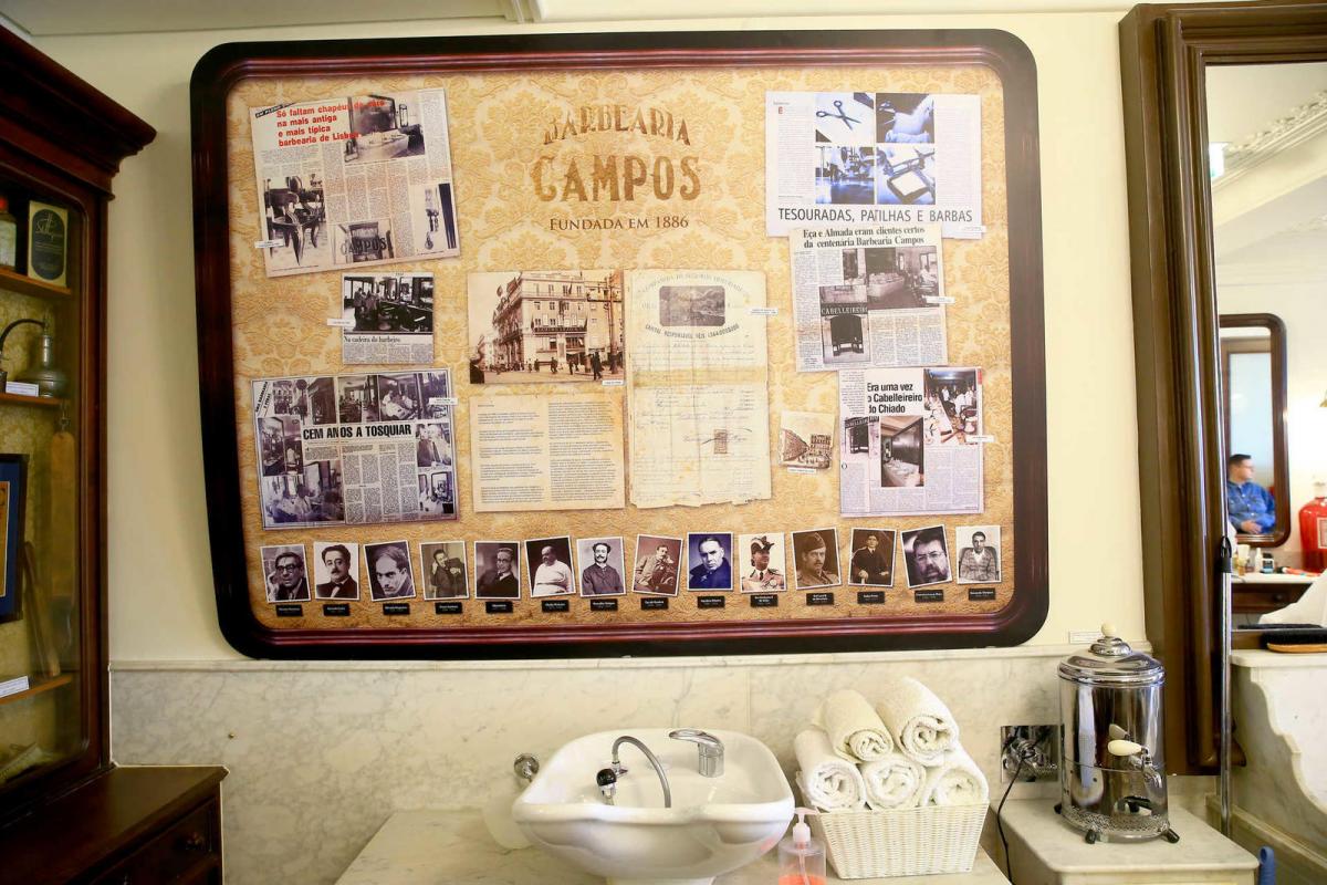 Com 130 anos de história, a Barbearia Campos – Cabelleireiro foi frequentada por muitas figuras da arte, da cultura, da política e da vida social lisboeta, como Ramalho Ortigão, Eça de Queiroz, Aquilino Ribeiro, Ramada Curto, Almada Negreiros e tantos outros. Com tetos estucados, chão original de mosaico e bancada de lavatórios em pedra, a loja apresenta ainda o mobiliário antigo, como a cadeira de barbeiro de 1886, as cadeiras de barbeiro mecânicas do início do século XX, cromadas, os espelhos emoldurados e os armários de madeira, tudo contribuindo para se poder reviver o ambiente e o charme de outros tempos.